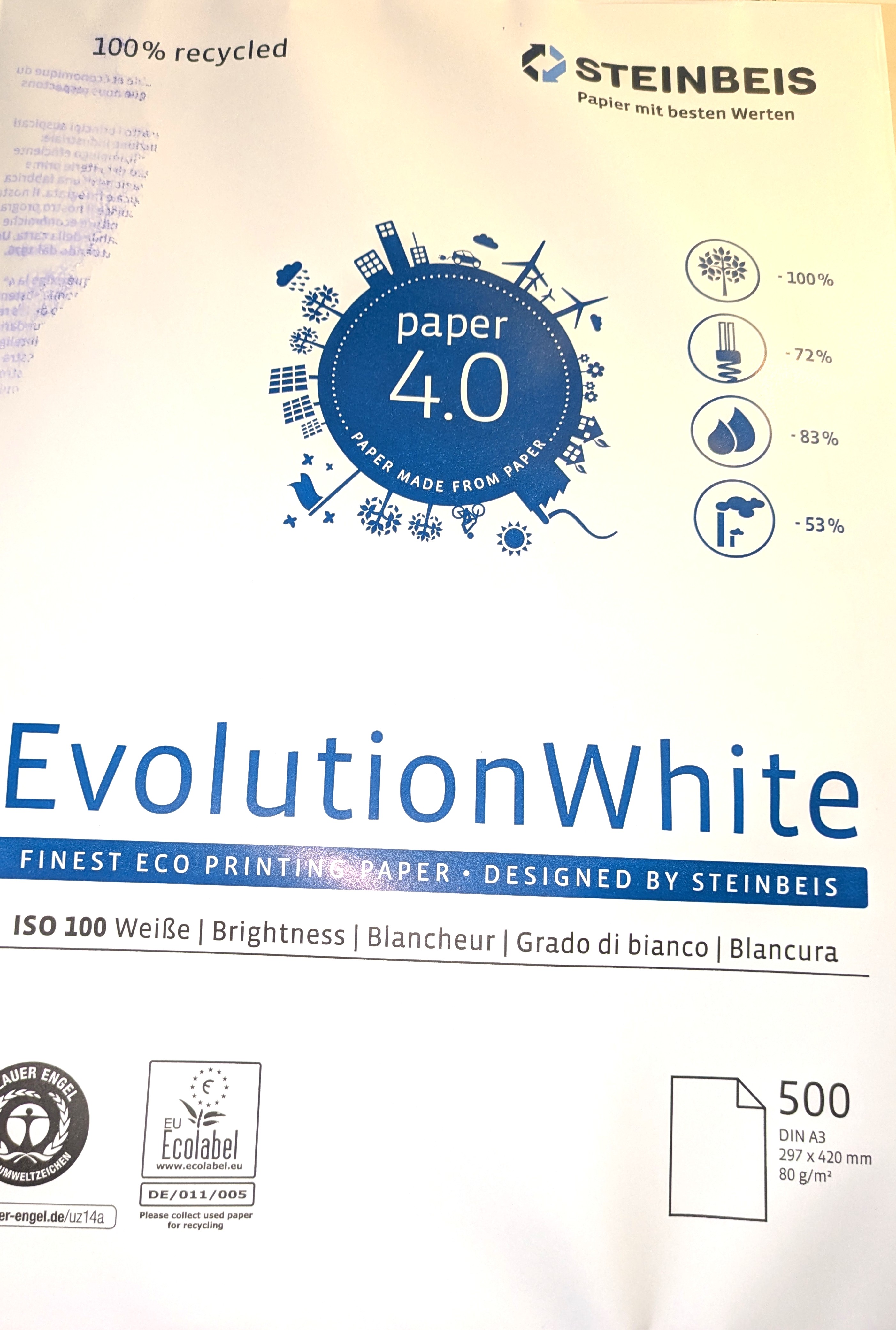 The Steinbeis Recycled Printer Paper 80gsm A5 A4 or A3 is shown in A4 & A3 size products , New for 2025 , Recycled Paper & Card.