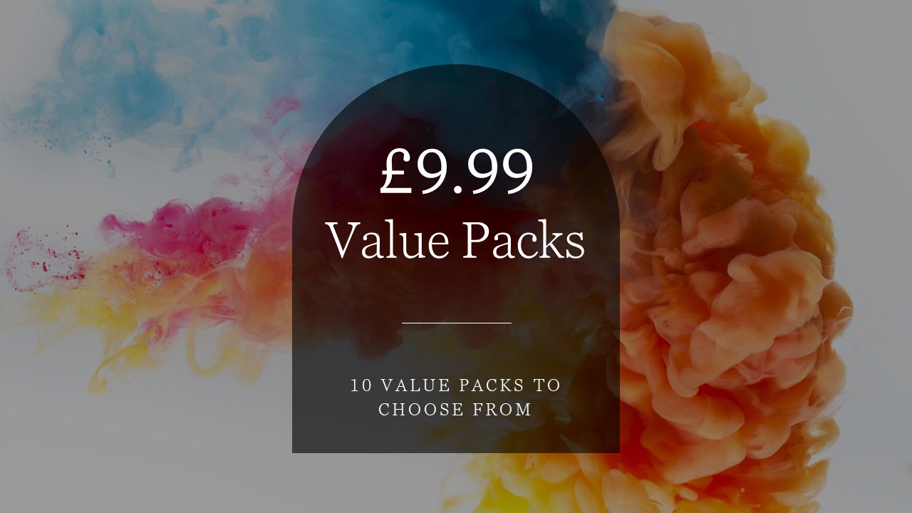 The £9.99 packs 10 to choose from 12x12inch size is shown in £4.99 & £9.99 value packs.
